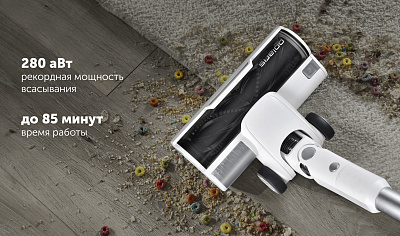 Ручной пылесос с мощностью мотора в 800 Вт и мощностью всасывания в рекордные 280 аВт эффективно удаляет пыль, волосы, шерсть животных и другой мусор с различных покрытий, включая ковры, паркет, плитку и ламинат. Для разных типов загрязнений предусмотрены четыре режима мощности: Auto, Low, Mid, Max.