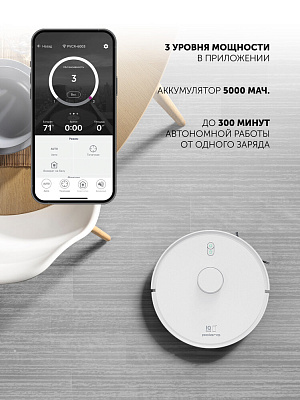 Li-ion батарея 5000 мАч - площадь уборки 280 м² на одной зарядке.