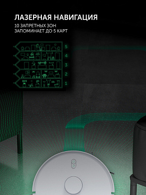 • Высокоточная система лазерной навигации для построения карты помещения, сохраняет до 5 карт