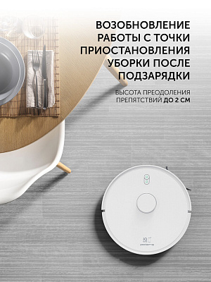 Робот-пылесос с HEPA фильтром. Создан для сухой и влажной уборки. Благодаря лидару легко ориентируется в пространстве и избегает столкновений. Управлять режимами и контролировать уборку дистанционно удобно в приложении IQ Home.