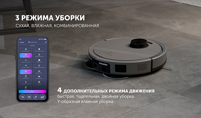 | Режимы движения | режим Авто, точечная уборка, быстрая уборка, тщательная уборка, У-образная влажная уборка |
