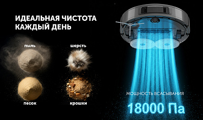 • Повышенная мощность всасывания 18000 Па