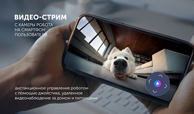 • Видео-стрим с камеры робота на телефон пользователя, дистанционное управление роботом с помощью джойстика.