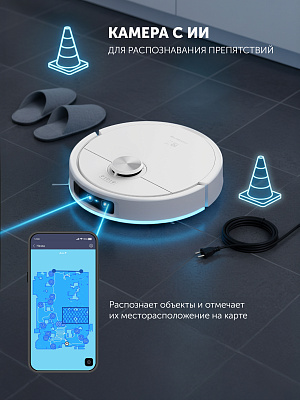 • Встроенная камера с ИИ для распознавания препятствий, распознает объекты и отмечает их местоположение на карте.
