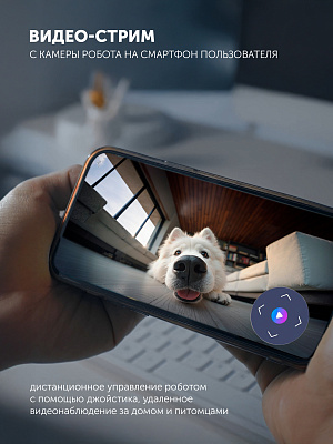 • Видео-стрим с камеры робота на телефон пользователя, дистанционное управление роботом с помощью джойстика.