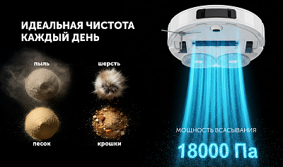 • Повышенная мощность всасывания 18000 Па