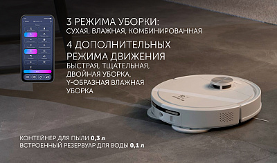 | Режимы движения | режим авто, точечная уборка, быстрая уборка, тщательная уборка, У-образная влажная уборка |