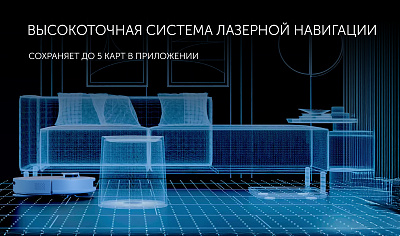 • Высокоточная система лазерной навигации для построения карты помещения, сохраняет до 5 карт