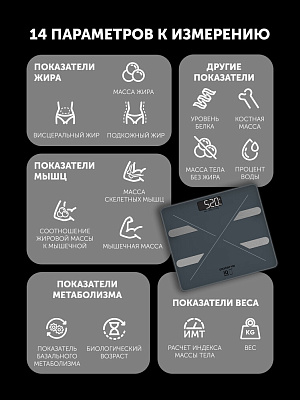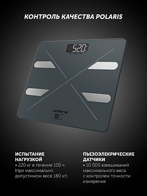 Напольные весы Polaris - это умное устройство, которое поможет вам следить за своим здоровьем и физической формой. С их помощью вы сможете контролировать не только свой вес, но и множество других параметров, которые помогут вам лучше понять свое тело и принять меры для его улучшения. Умные весы измеряют 14 различных параметров. Весы Polaris измеряют индекс массы тела, процент жира, уровень воды в организме, висцеральный и подкожный жир, долю мышц в теле, базовый расход калорий, мышечную массу, костную массу, массу тела без жира, долю скелетных мышц, уровень белка и биологический возраст. Напольные весы Polaris - это устройство, которое поможет вам лучше понять свое тело и принять меры для его улучшения. Они просты в использовании и предоставляют вам подробную информацию о вашем здоровье. Весы Polaris умеют уникальные функции: весы для новорожденных, весы для животных и взвешивание багажа. Поэтому данные весы будут полезны всей семье. Весы Polaris - это умное устройство, которое поможет вам следить за своим здоровьем и физической формой.