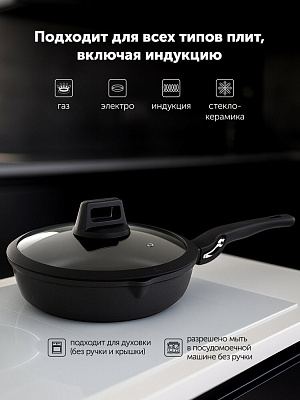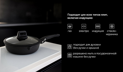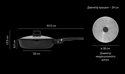 Подходит для всех видов плит, включая индукцию. Можно мыть в посудомоечной машине c использованием неагрессивных моющих средств. Диаметр дна 19 см, диаметр индукционного диска 18 см.