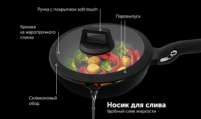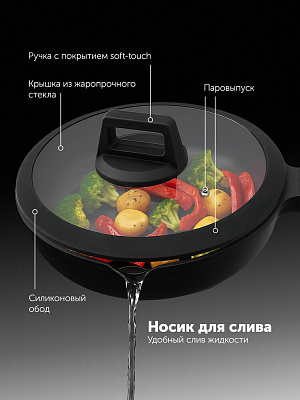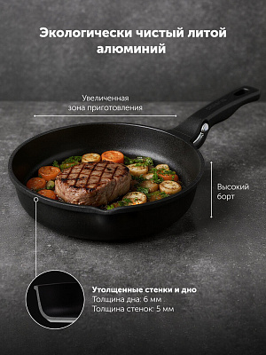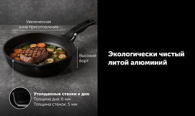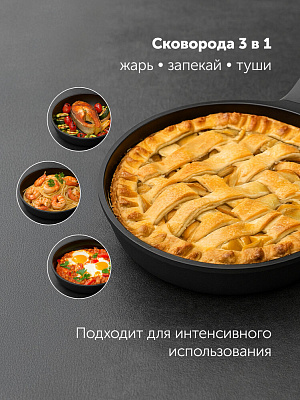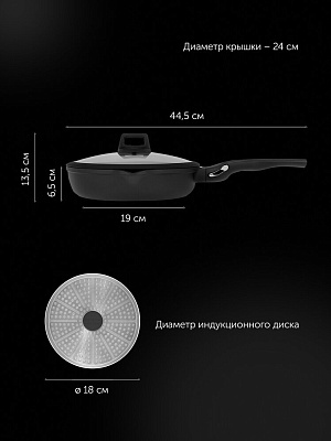 Сковорода литая Calido-24FP со съемной ручкой и крышкой