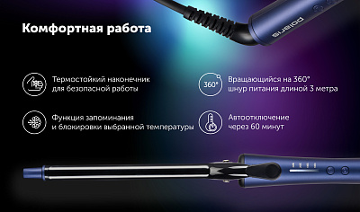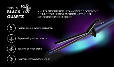 Минерализованное покрытие из черного кварца Black Quartz с эффектом инфракрасного излучения для оздоровления волос и сохранения укладки на долгое время. 4 температурных режима 160-180-200-220С с LED индикацией.