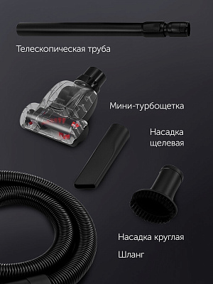В комплекте: телескопическая труба, щелевая насадка, круглая насадка, мини-турбощетка.