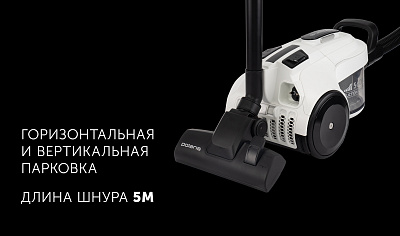 Пылесос циклонного типа с мощностью мотора 2000 Вт и мощностью всасывания 560 аВт.